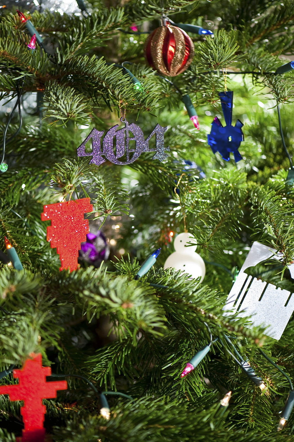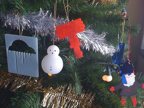 They're Christmas decorations based on individual social network data. So the size of the head on the snowman represents the number of Twitter followers you have. The silver cloud shows miles travelled per month on Dopplr. The red one represents monthly scrobbles on Last.fm. Blue, the apertures you've used over the year on flickr.