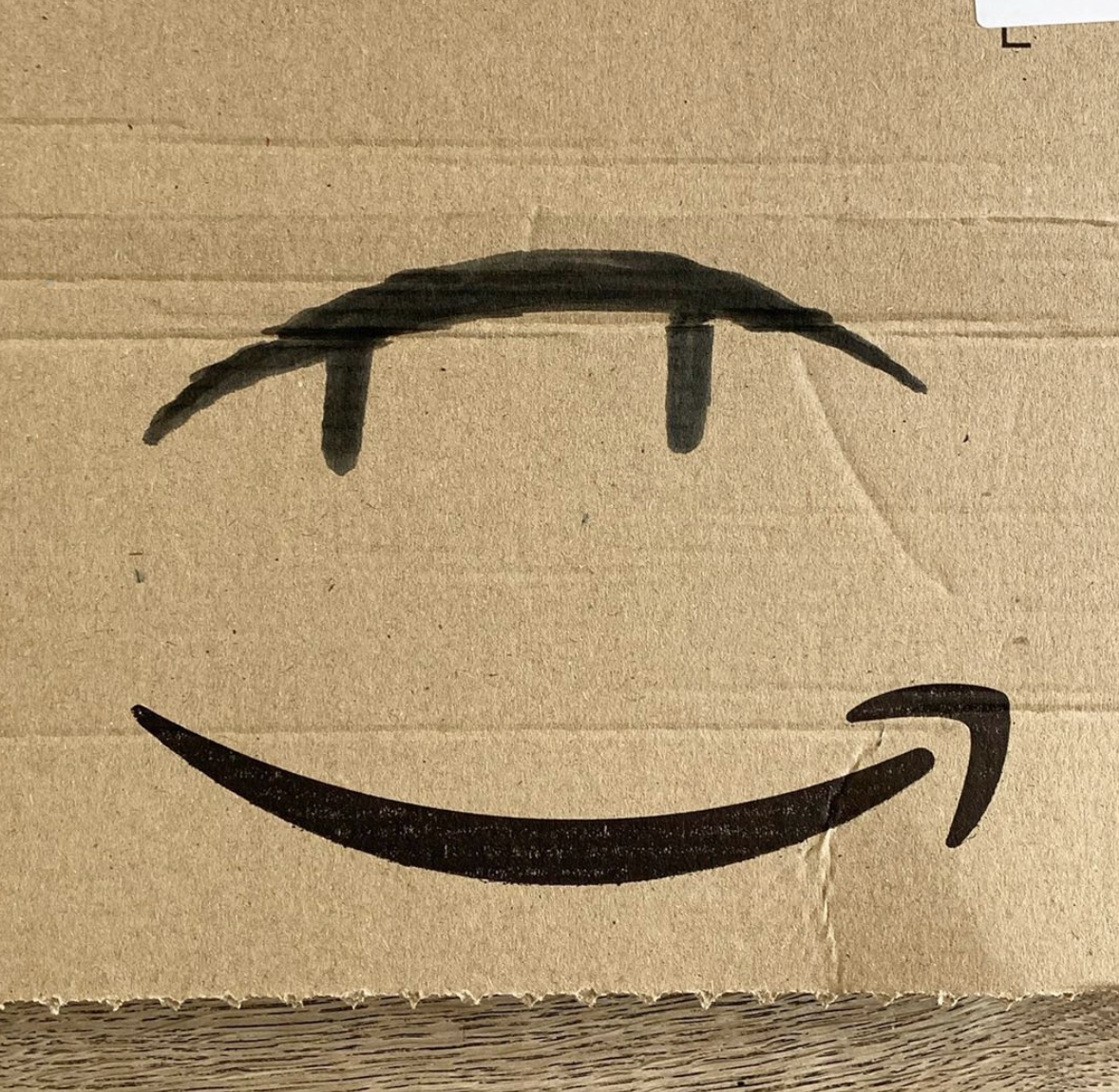 Inspired by Alan I started drawing on the Amazon boxes we had at home. I started adding eyes to the smile. Here are the first few. Like all good side projects I started an Insta @eyesonamazon.