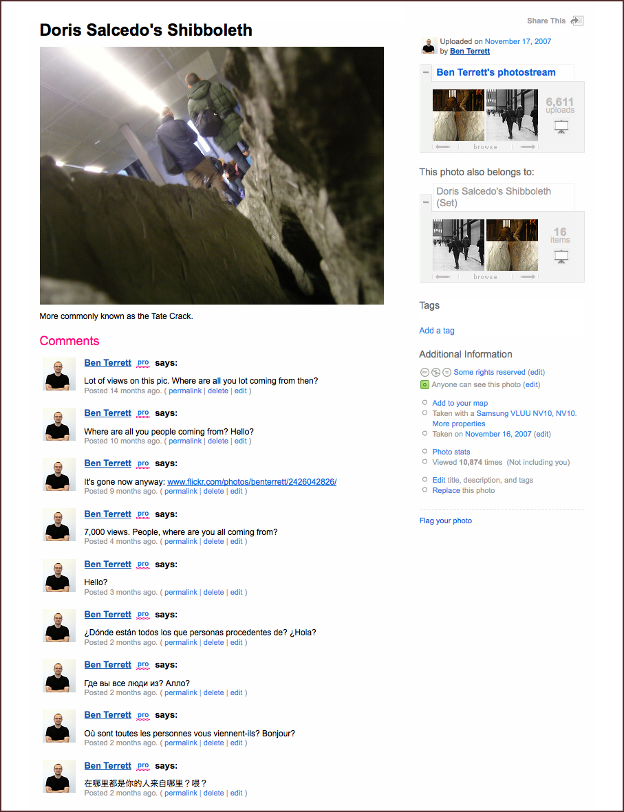 I met Aaron from Flickr t'other day. It was a great privilege because Flickr is one of my favourite things ever. One of the reasons I love it is because it's so quiet. So polite.