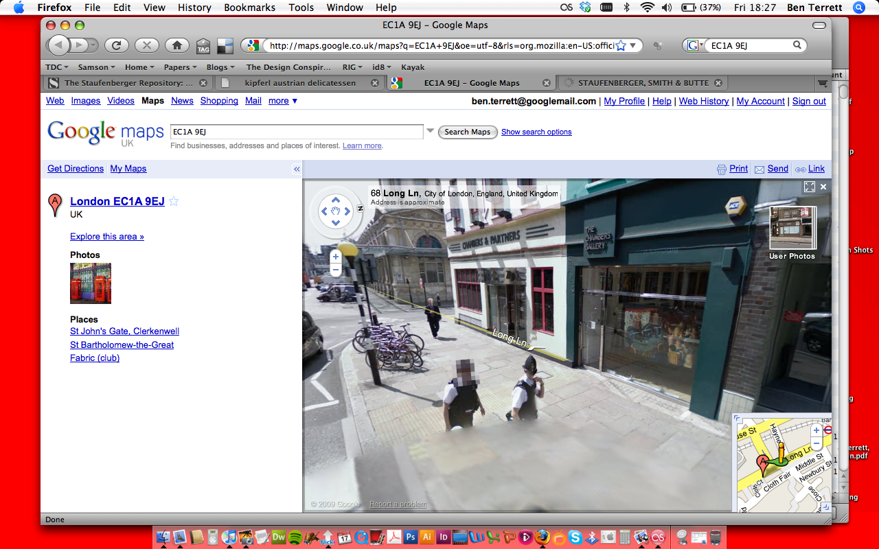"Sitting in Kipferl the other afternoon, we were chuffed to see a Google Street View car come past. Only for it to be pulled over by the City of London police. After a brief conversation through the window, the driver got out, turned off the camera and waited while the copper took a long time to make some enquiries.