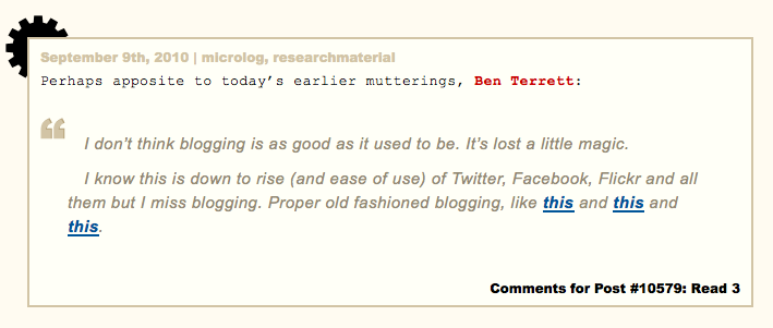 I should explain this properly in a post. Maybe I will. Russell and I have talked about this a lot, Matt has joined in and I started talking about it a little bit at IDSA. There's a new world emerging of frameworks and fuzzy rules. Flipboard is a recent example.