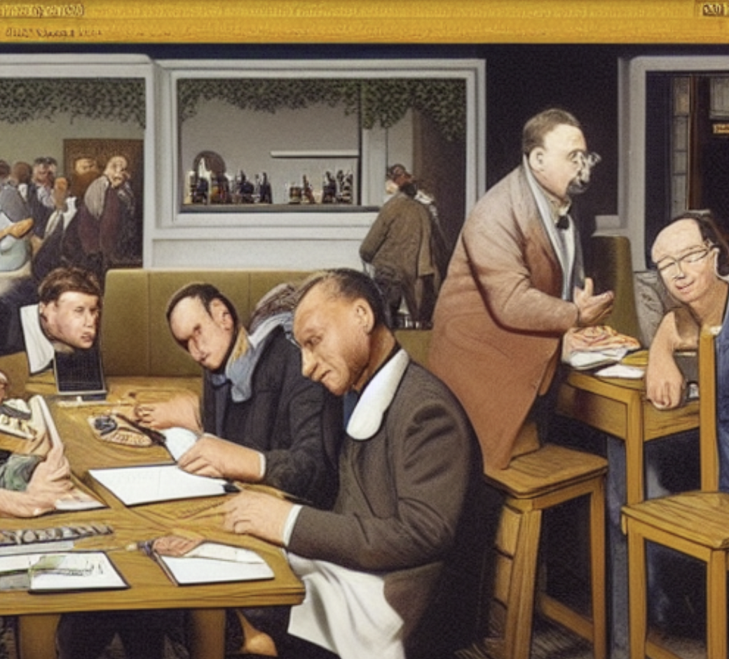 The prompt for the picture above was 'The great pub quiz technology war of the 21st century'. From Dreamstudio via SimonW. Am I a Prompt Designer now?