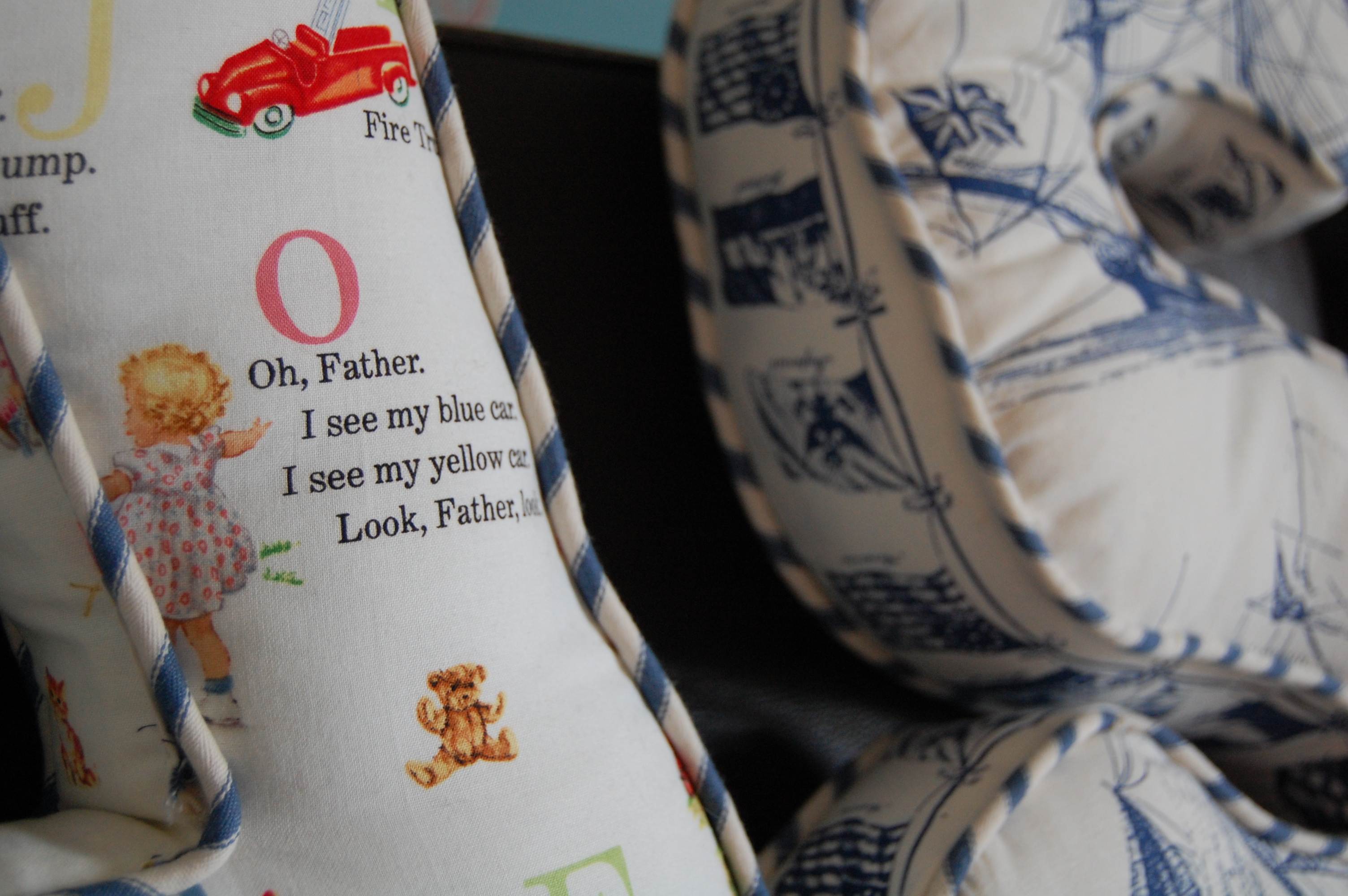 Made by a lady in Dorset from (I think) Michael Miller fabric. Not that I'm some kinda fabric head, I'm just trying to credit the right people.