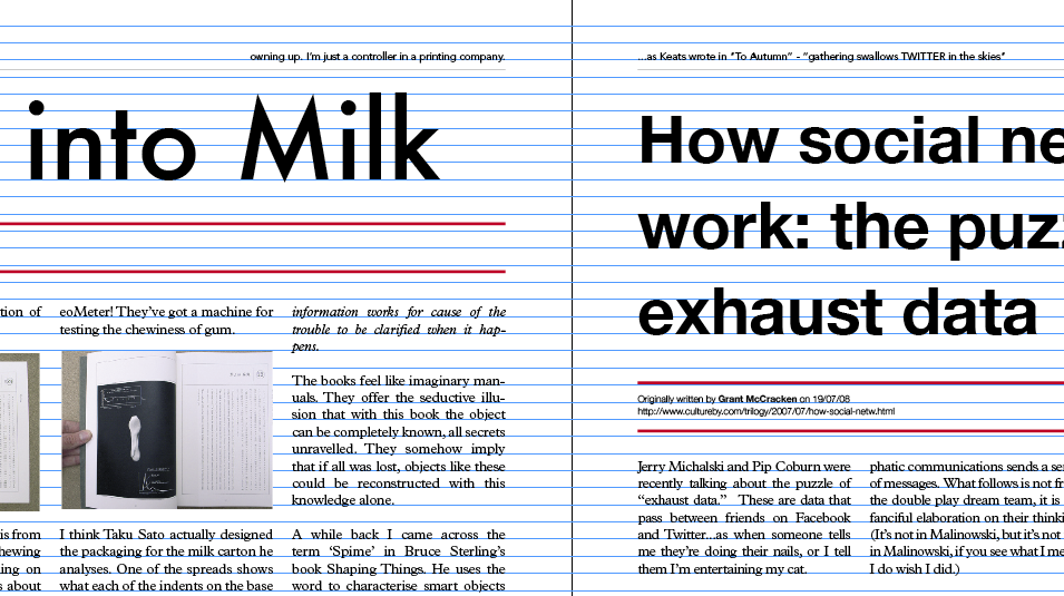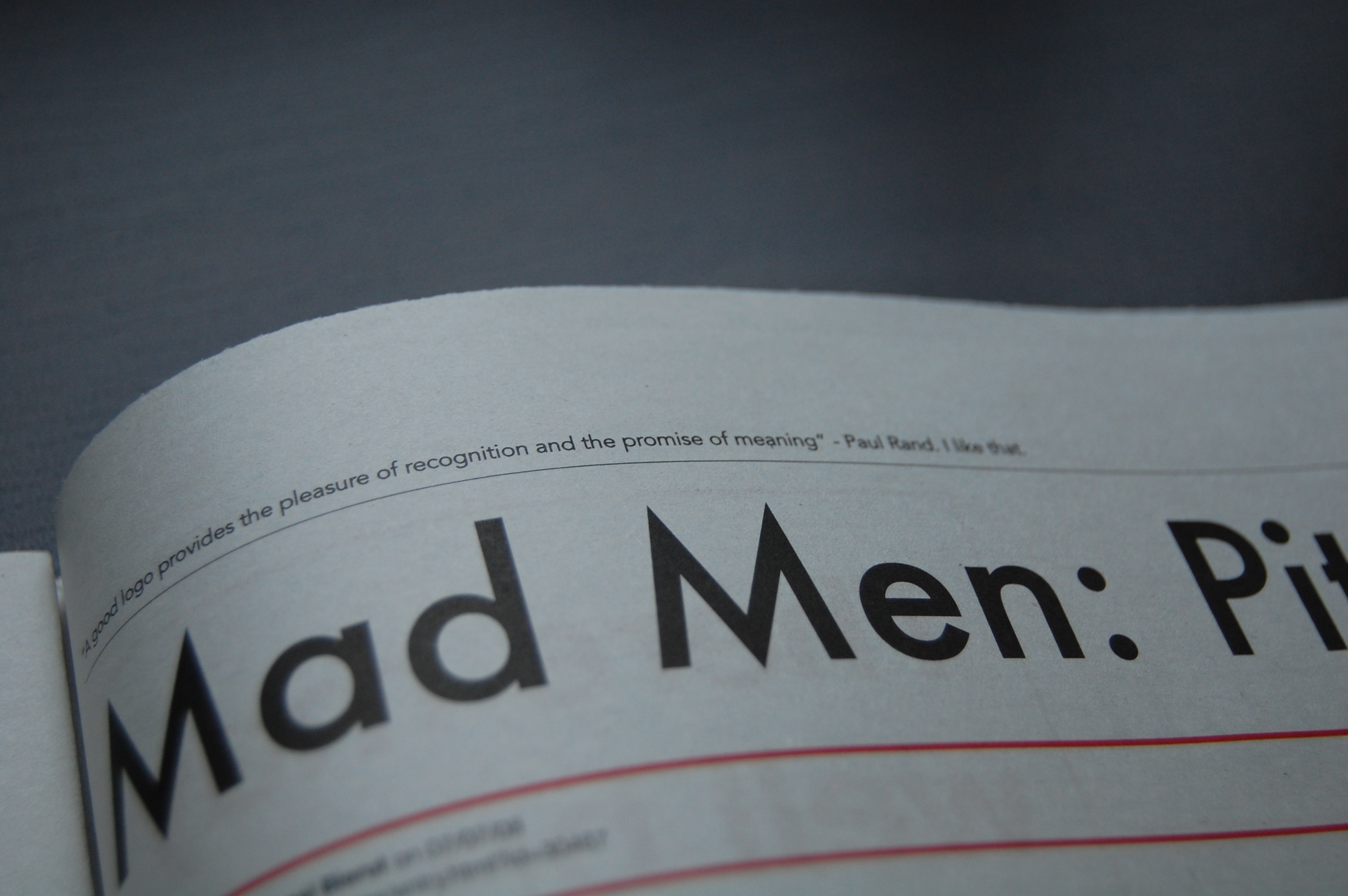 For example the headline for Mad Men: Pitch Perfect is set in Futura because that was one of the only fonts around at the time the series was set. (Remember the furore last year when it was pointed out that most of the fonts used in the programme wouldn't have existed at the time?). I set the headline for Matt Jones' article in the Dopplr font, and so on.